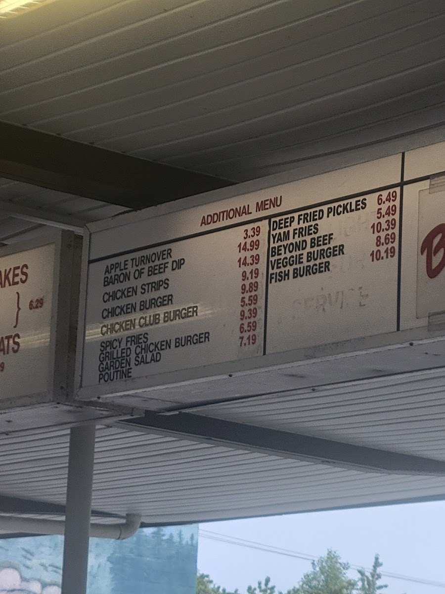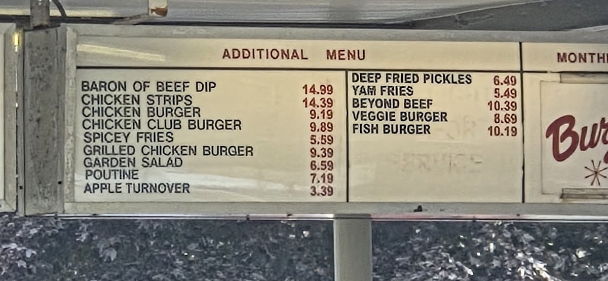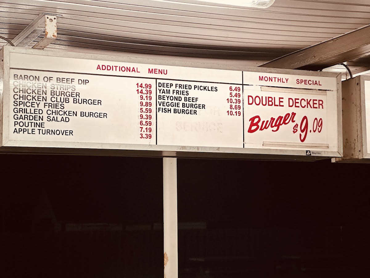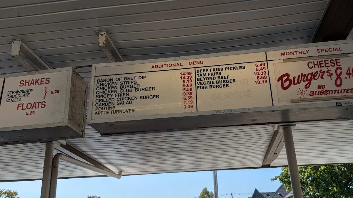 The menu features a variety of burgers—from simple single patties to deluxe cheeseburgers and chicken club sandwiches—alongside satisfying sides like French fries, poutine, and tasty chicken strips. Whether you're stopping by for a quick lunch, a mid-day snack, or a nostalgic drive-in dinner, the food blends well with the friendly, no-fuss atmosphere of the place.